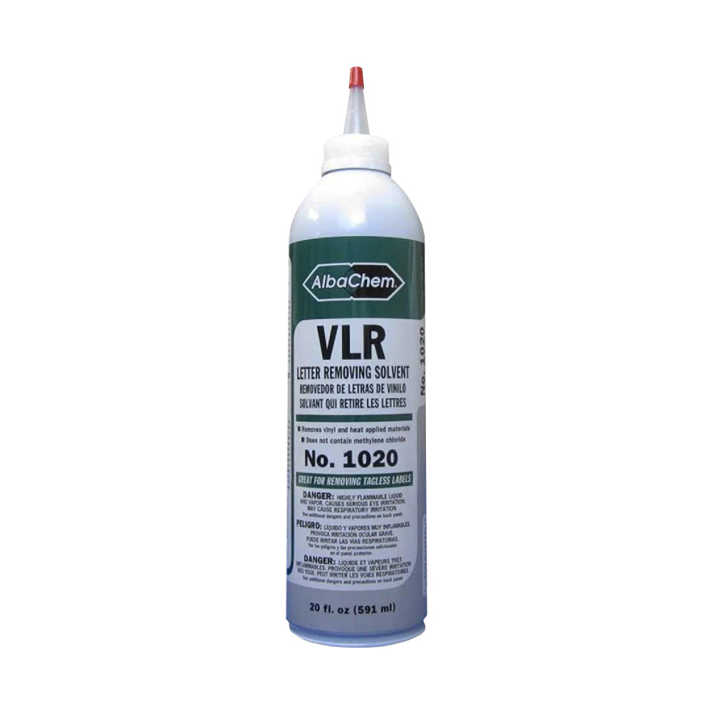 AlbaChem Vinyl Remover completely removes vinyl letters and residues from most fabrics. The Yorker spout allows for easy application minimizing waste. Highly effective and fast drying, Vinyl Letter Remover saves you time and money by dramatically reducing “seconds”.